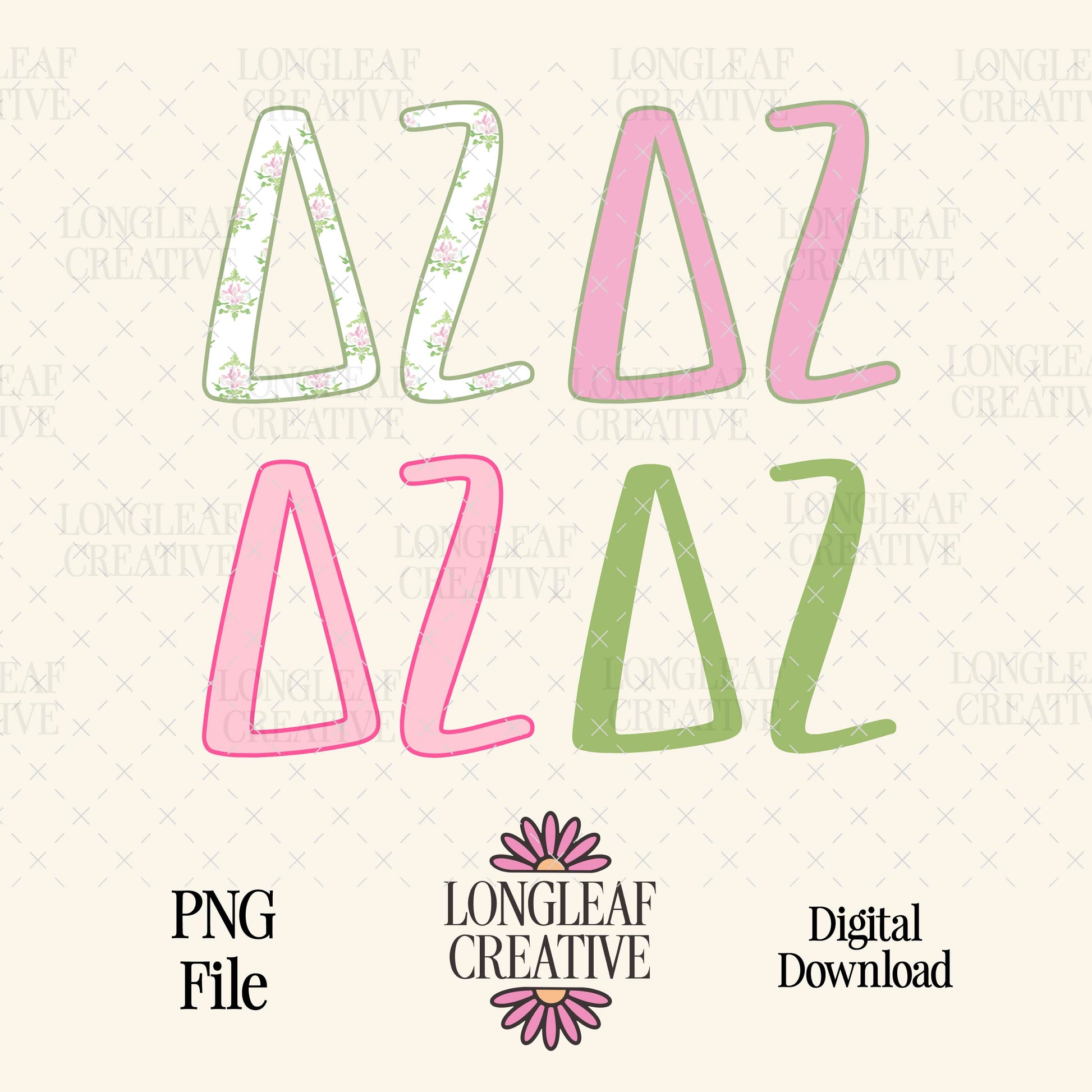 Delta Zeta Coquette Sorority Letters Set SVG Digital Download Design File